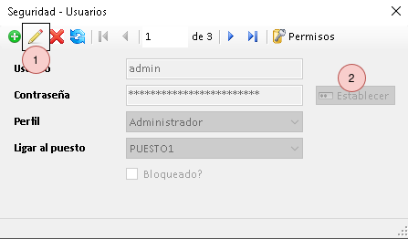 Para modificar su contraseña (que por defecto es admin) lo podrá realizar desde la solapa Seguridad - Usuarios.