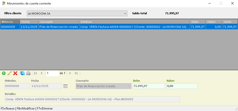 Movimientos de cuenta corriente separados por cliente