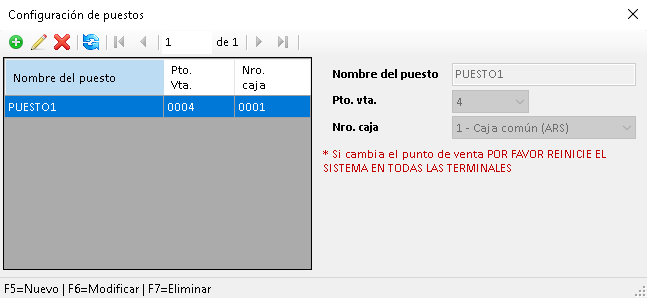 Esto es muy importante configurarlo y dejarlo fijo antes de comenzar con las compras o ventas en cada puesto en particular. Si no hay ninguna caja asignada, no podrá asentar ningún pago en efectivo; si no asigna ningún punto de venta no podrá realizar ninguna venta.