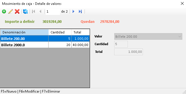 Esta opción le permite controlar los valores o denominaciones; es decir, la cantidad de monedas y billetes de cada denominación.
